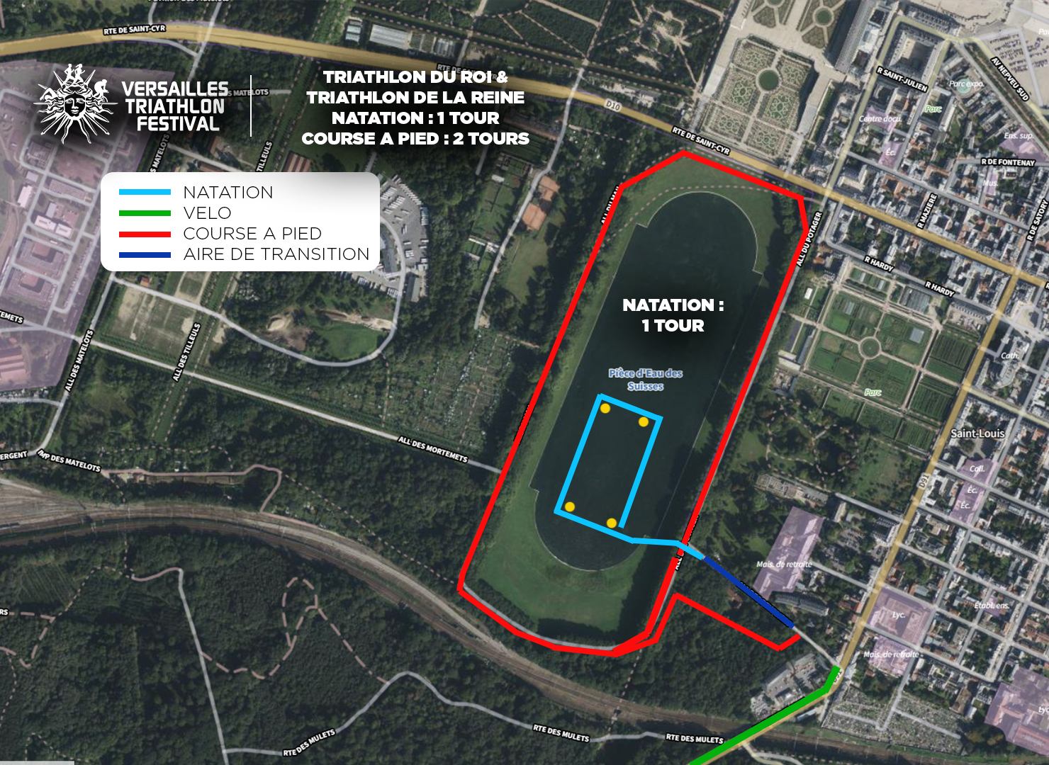 Le Triathlon du Roi et le Triathlon de la Reine sont des triathlons S. Ils se déroulent sur le même parcours.